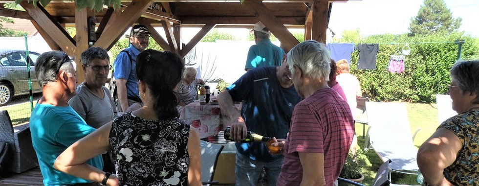 La matinée ne s’arrête pas là !! Nous remercions Gilles qui invite le groupe à fêter son anniversaire, et les photos se passent de commentaires….