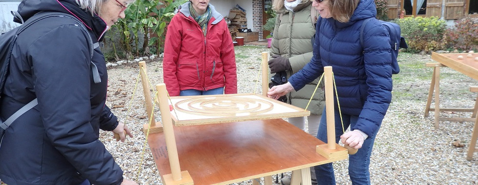 La randonnée terminée, Aline et Christophe Bethoul nous invitent à visiter leur atelier où les jeux sont fabriqués artisanalement avec les essences des bois de nos régions. Leur but étant de ré-instaurer la convivialité autour d’un jeu entre amis ou en famille, les photos ci-après en sont le témoin.