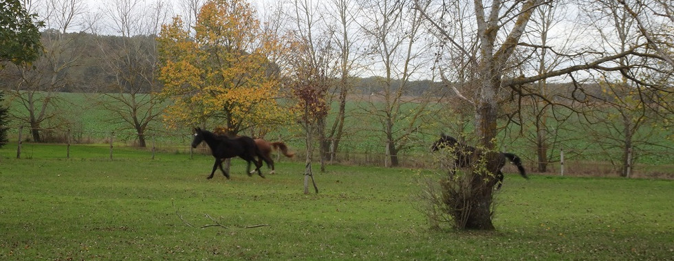 Fin de parcours pour les deux boucles, pour le 10 km retour par la Ferme des Dames et arrivée au parking, pour le 8,2 km passage par les Chicots, un peu de D 115 et de D 128 par la Croix St-Jacques, et quand les chevaux galopent la file indienne passe pour un retour au parking.