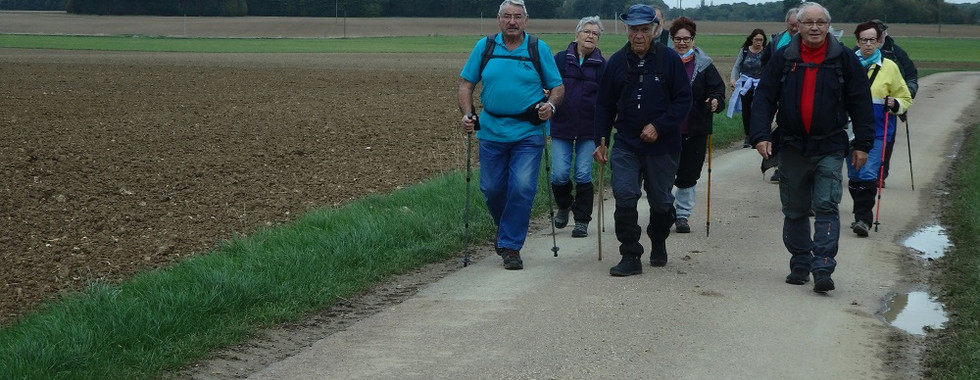 32 randonneurs au rendez-vous du parking de la mairie pour 2 boucles de 8,2 et 10 km, sous un ciel toujours couvert moyennement menaçant.
