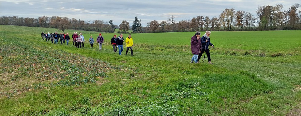 Malgré les menaces de la météo, encore un bel après-midi pour les 36 marcheurs rassemblés en bas de la Rue du Vieux Château, pour une randonnée préparée et organisée par Annick et Claude comprenant 2 boucles de 7,5 et 9,1 km.
